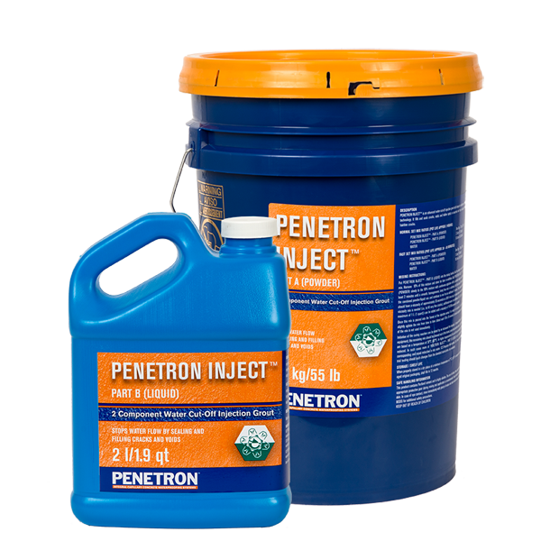 PENETRON INJECT™ е кристализиращ циментов разтвор за спиране на активни течове през бетонно сечение чрез инжектиране. Съставът представлява усъвършенствана технология на база дълбоко кристализиращ двукомпонентен цимент-съдържащ, уплътняващ разтвор. PENETRON INJECT™ прави водоплътни бетони и естествено-каменни сечения, като запълва и запечатва капилярите и микро-пукнатините в тях. Може да се използва за запълване на празнини и кухини, увеличавайки непроницаемостта и якостта на ремонтираната зона. Фино-размерните компоненти на продукта позволяват проникване дори в много тесни капиляри и микро-пукнатини на бетона, като ги запечатват напълно. Така формираната в свързаната мрежа от капиляри и микро-пукнатини нова неразтворима кристална структура дава възможност за осигуряване на пълна непроницаемост на сечението. PENETRON INJECT™ има много нисък вискозитет, приблизително равен на този на водата, което му позволява да прониква под високо налягане в дълбочина, измествайки съдържащата се вода в капилярите и микро-пукнатините. Благодарение на своя усъвършенстван състав и запечатващото действие, PENETRON INJECT™ осигурява антикорозионнна защита на стоманената армировка и монтирани в дълбочината на сечението закладни части. В зоните на полагане формира нов защитен слой, с което се възстановява пасивиращата способност на сечението спрямо стоманения армировъчен скелет.