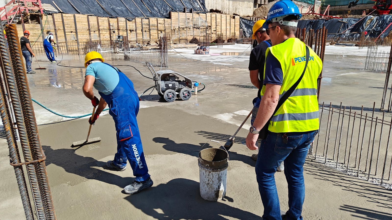 Жилищен комплекс изпълнен по Системата PENETRON за ново строителство. Обектът се намира в изключително агресивната морска среда - на първа линия. Фундаментната плоча е изпълнена с директно шлайфане с хидроиозлиращия повъхрностен втърдител PENETRON PLUS. След завършването на процеса, на следващия ден...