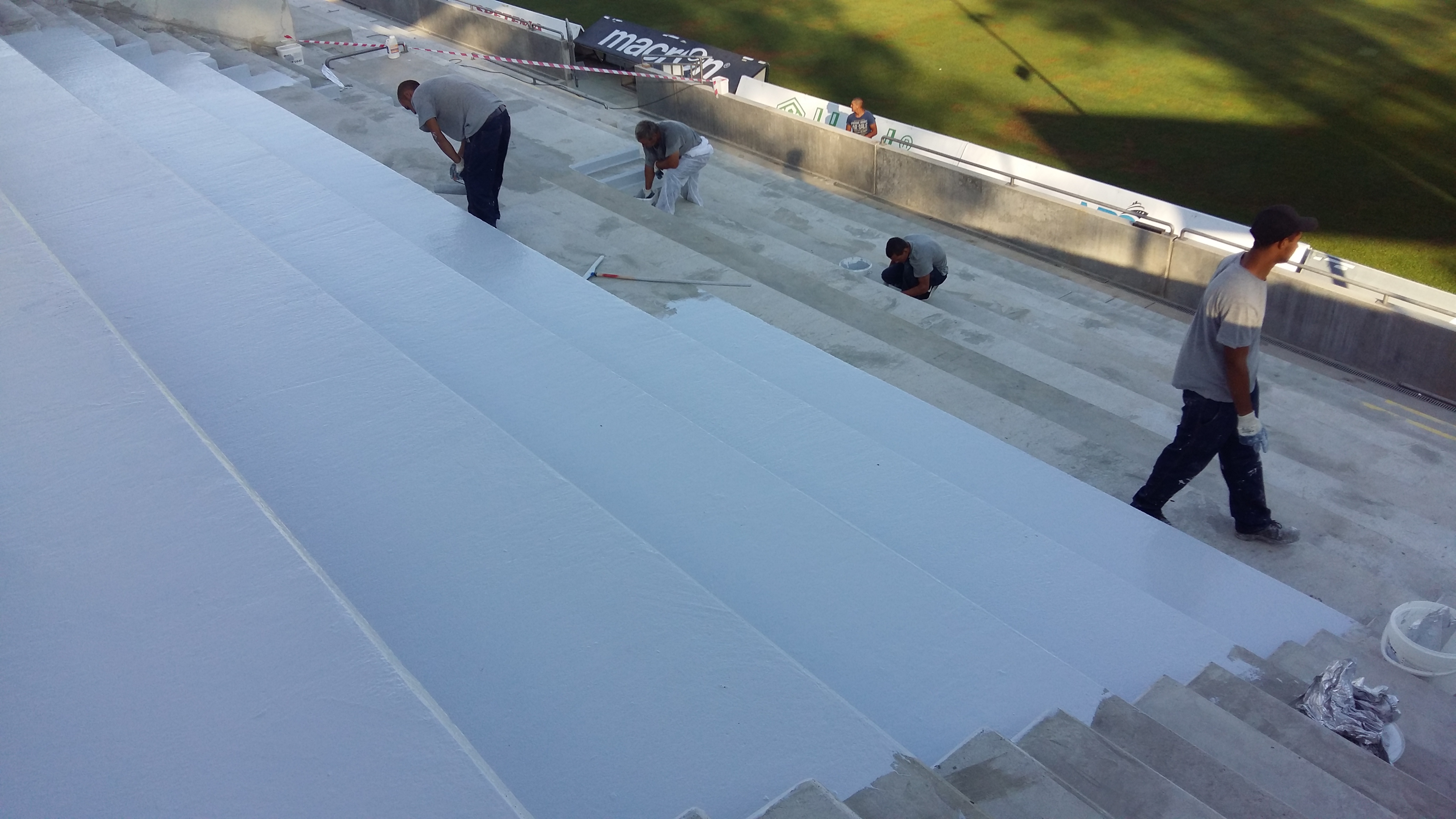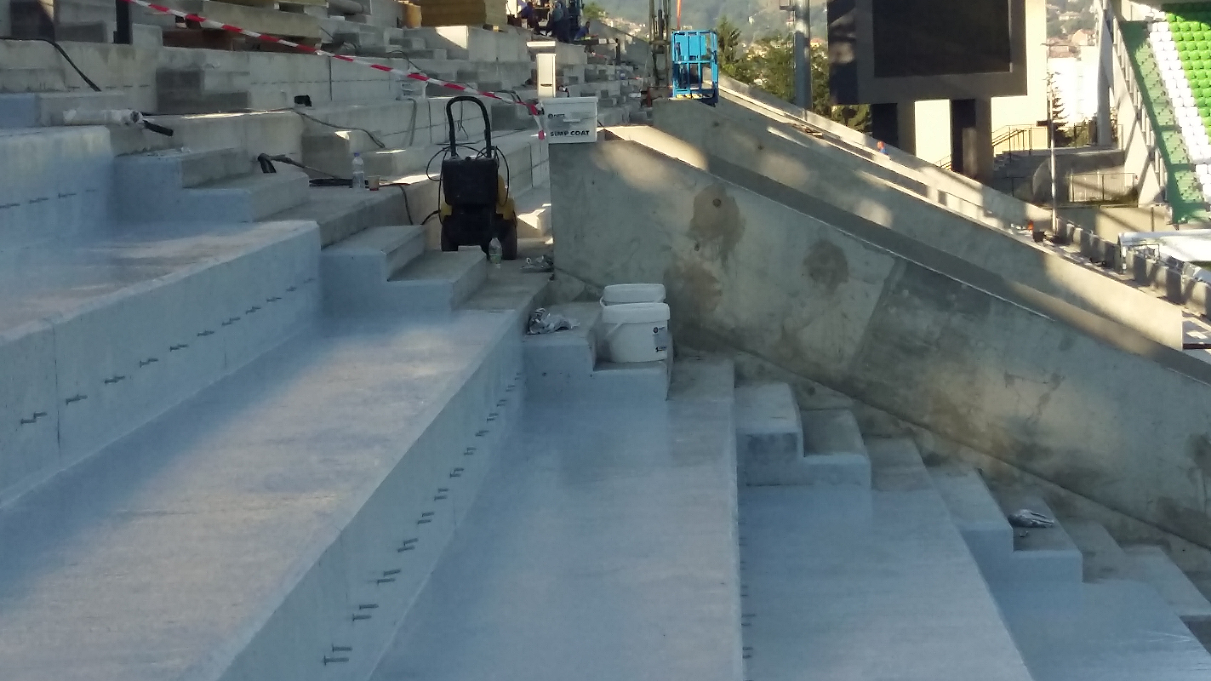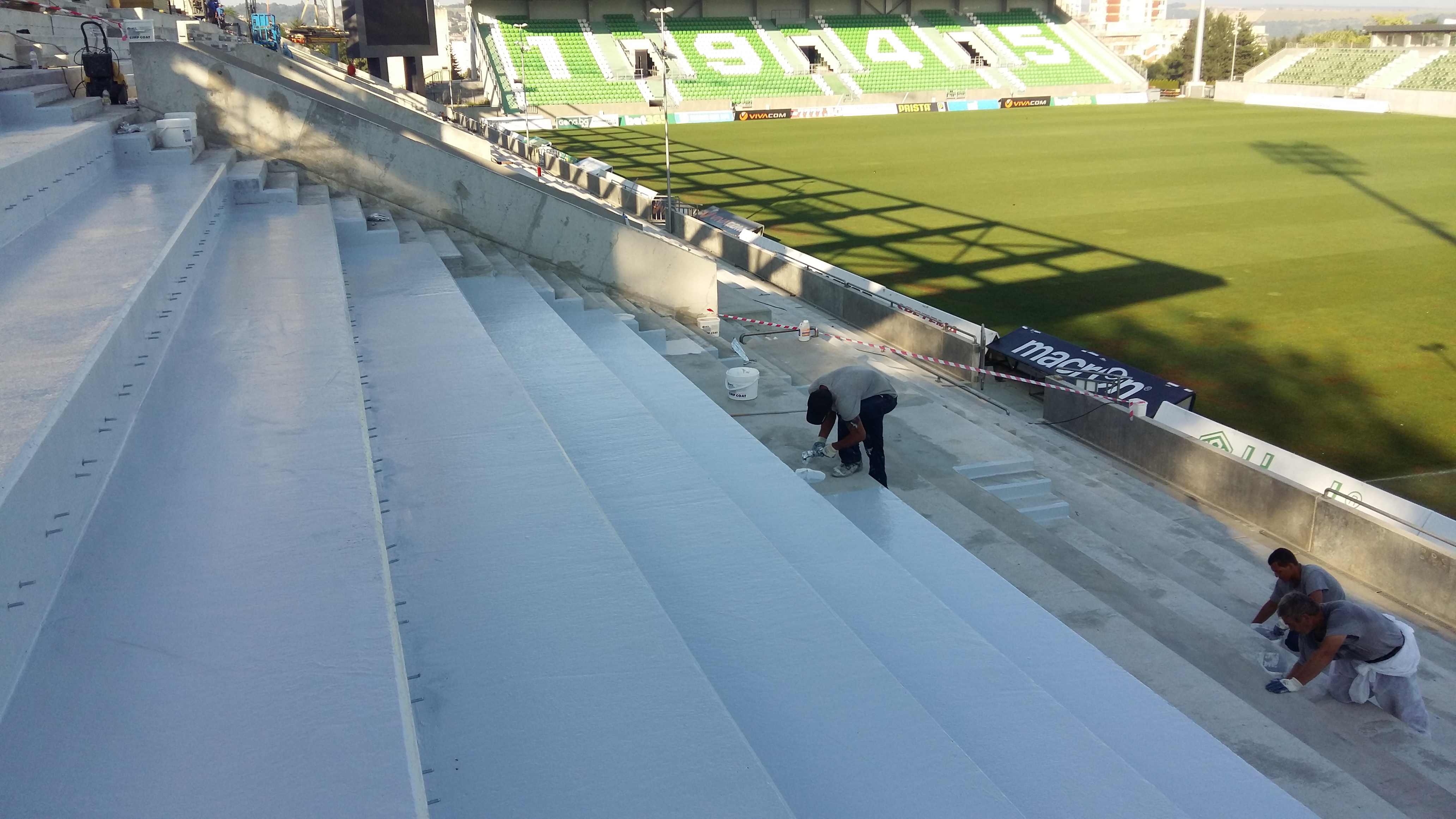 След успешното хидроизолиране на трибуната "Моци", Системата PENETRON отново е използвана при новото изграждане на сектор "В". Към състава на бетона е добавен PENETRON ADMIX за хидроизолация и химическа защита.