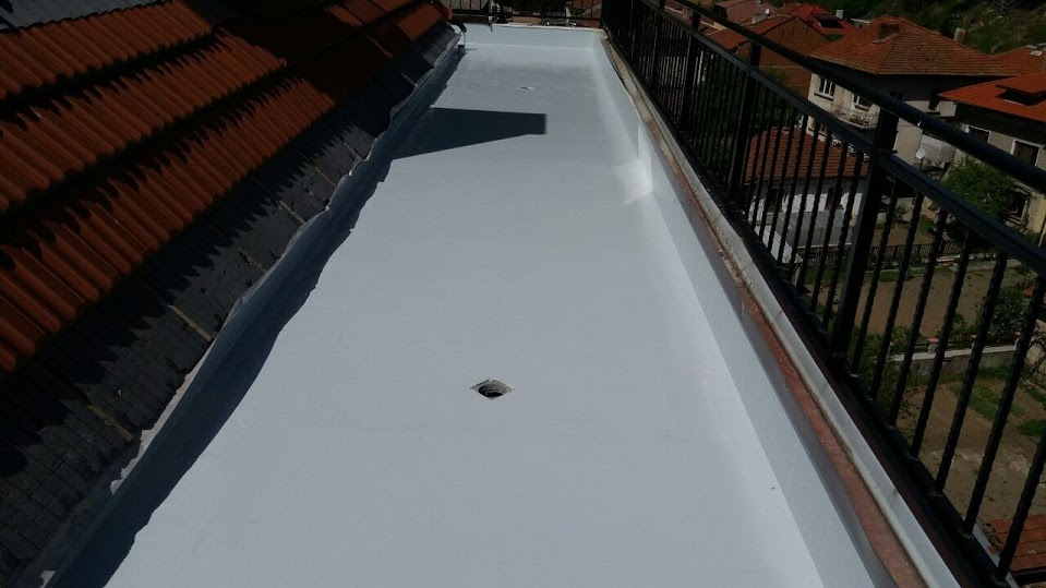 Ремонт на тераса по ситема Penetron. Като финишно покритие е положена системата SiMP® COAT 25 - висококачествена, течна, еднокомпонентна, еластична, хидроизолационна мембрана, в комбинация с високо трафикоустойчива боя PENECOAT PU - H със 100% UV защита. Добавен и кварцов пясък за добра неплъзгаща повърхност.