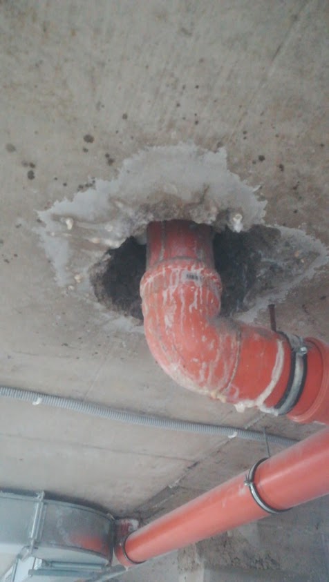 Ремонт на тръби преминаващи през стоманобетонна плоча по система Penetron осигуряващи трайна и надеждна хидроизолация и защита на бетона.