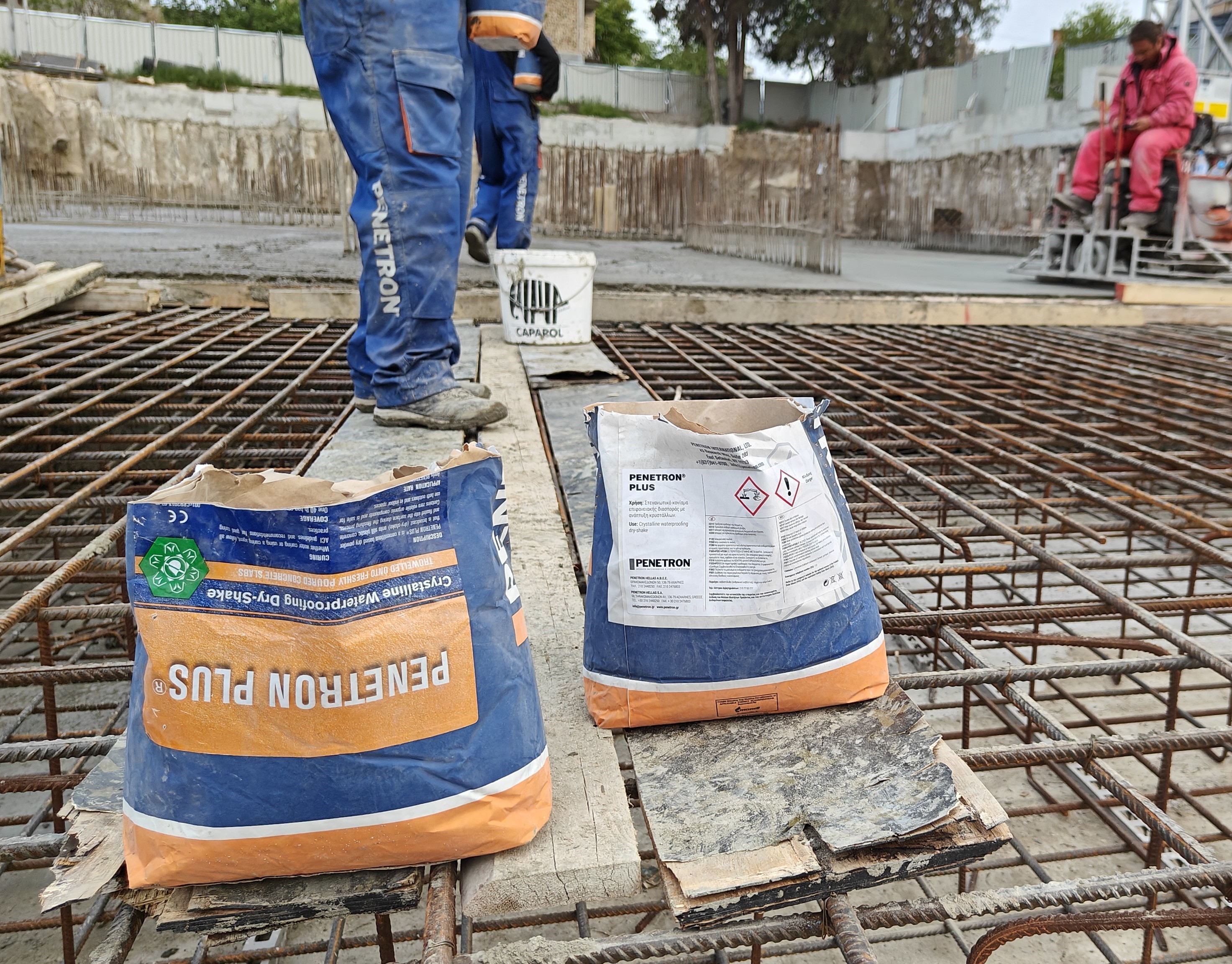 Жилищен комплекс изпълнен по Системата PENETRON за ново строителство. Обектът се намира в изключително агресивната морска среда - на първа линия. Фундаментната плоча е изпълнена с директно шлайфане с хидроиозлиращия повъхрностен втърдител PENETRON PLUS. След завършването на процеса, на следващия ден е положен течен импрегнатор PENESEAL FH - PS, който допълнително заздравява повърхностния слой и предпазва от ронене и прахоотделяне. Останлите стоманобетонни елементи са защитени с добавката за хидроиозолация и химическа защита - PENETRON ADMIX. За всички работни фуги са положени водонабъбващи ленти PENEBAR SW и като финална стъпка са обработени всички отвори от кофражни елементи (шпилки) посредством репарационните материали PENETRON и PENCERETE MORTAR.