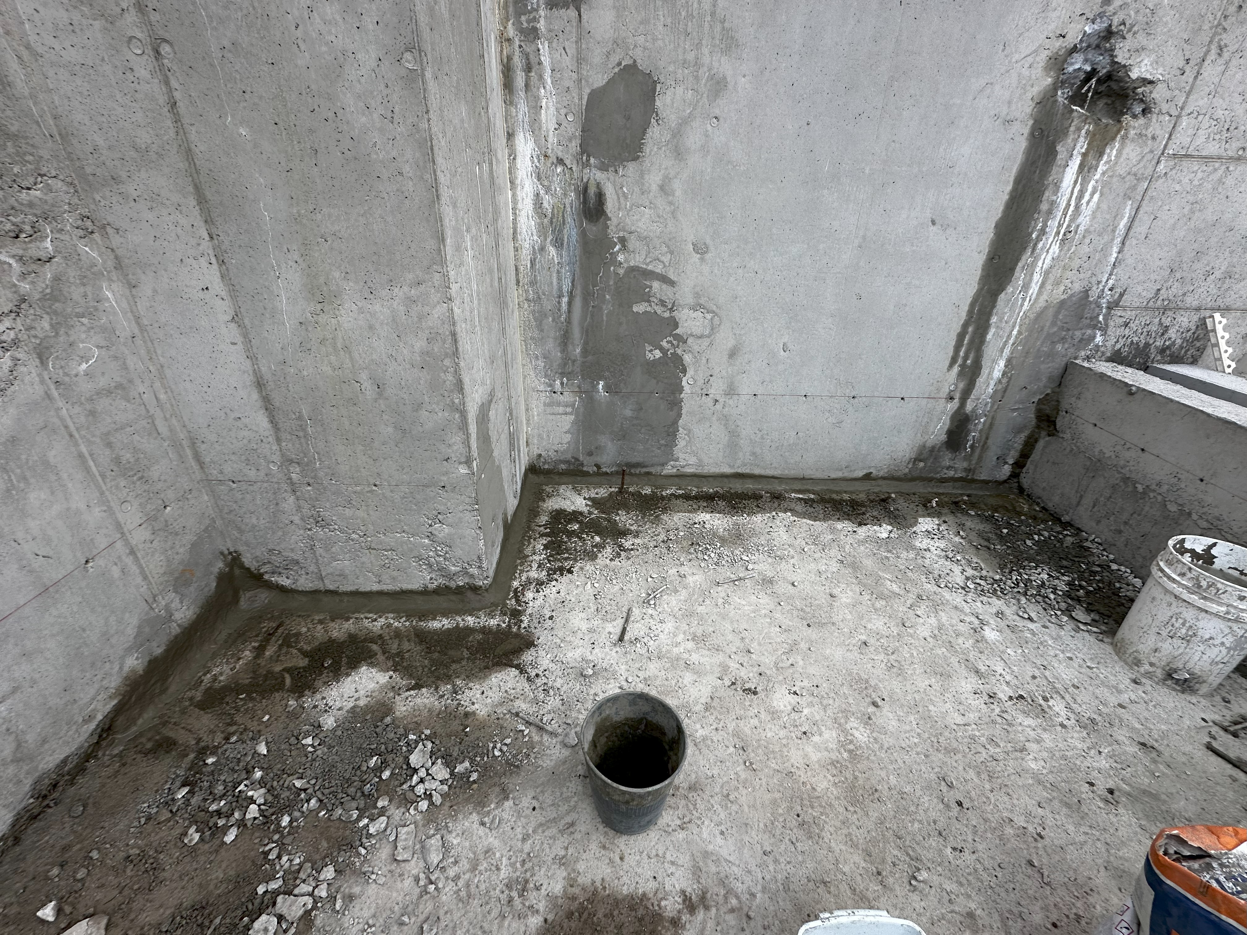 Ремонт на тръби преминаващи през стоманобетонна плоча по система Penetron осигуряващи трайна и надеждна хидроизолация и защита на бетона.